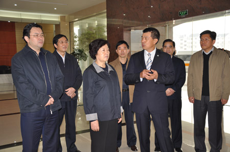 李新炎主席向孙书记简要汇报了龙工集团的总体运营情况和下一阶段的发展目标。李新炎主席说,长期以来,龙工在各级党政的热情关心和各有关部门的大力支持下,立足工程机械产业,着力科技创新,积极拓展市场,装载机的市场占有率和销量居全国同行业首位,挖掘机、叉车、压路机等整机及其他零部件的生产销售也在市场上迅速打开了局面;龙工品牌的知名度和美誉度不断提升,名列全球工程机械行业50强。目前,龙工人正在制订2010年的发展计划和“二轮创业”第二个“五年计划”,以“国际化定位、跨越式发展”为目标,努力实现龙工品牌由“中国名牌”向“世界知名品牌”的战略跃升,全力打造国际化一流企业。
